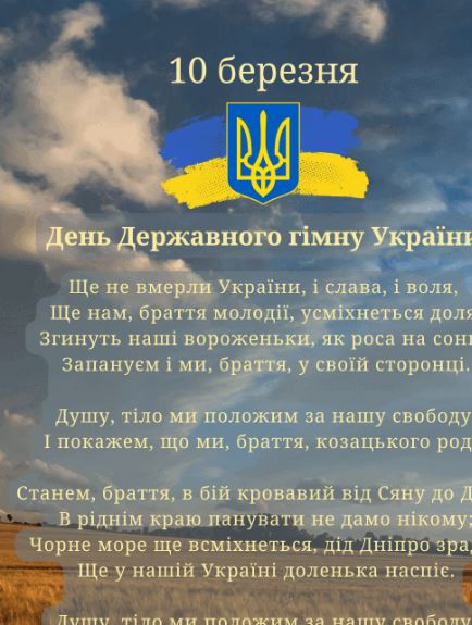 “Душу й тіло ми положим за нашу свободу..” Так, Гімн України дуже символічний, має глибокий і пророчий сенс для нашого народу. Особливо сьогодні, коли українці, продовжують творити історію нашої незламності, ціною власних життів, виборюють нашу самобутність і волю.