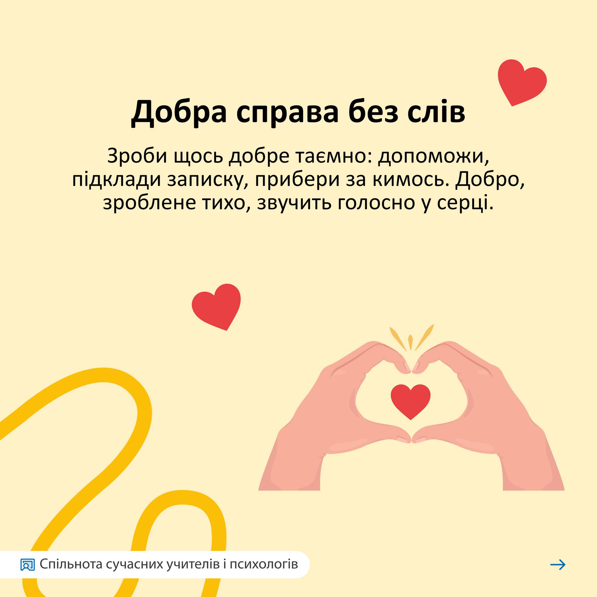 Цей день може стати чудовою нагодою для вчителів і учнів зупинитися, видихнути, подивитися одне на одного з добротою й запитати: “А що я сьогодні зробив доброго?”, адже іноді достатньо лише одного щирого слова, короткої посмішки чи просто уваги, щоб хтось поряд відчув тепло.