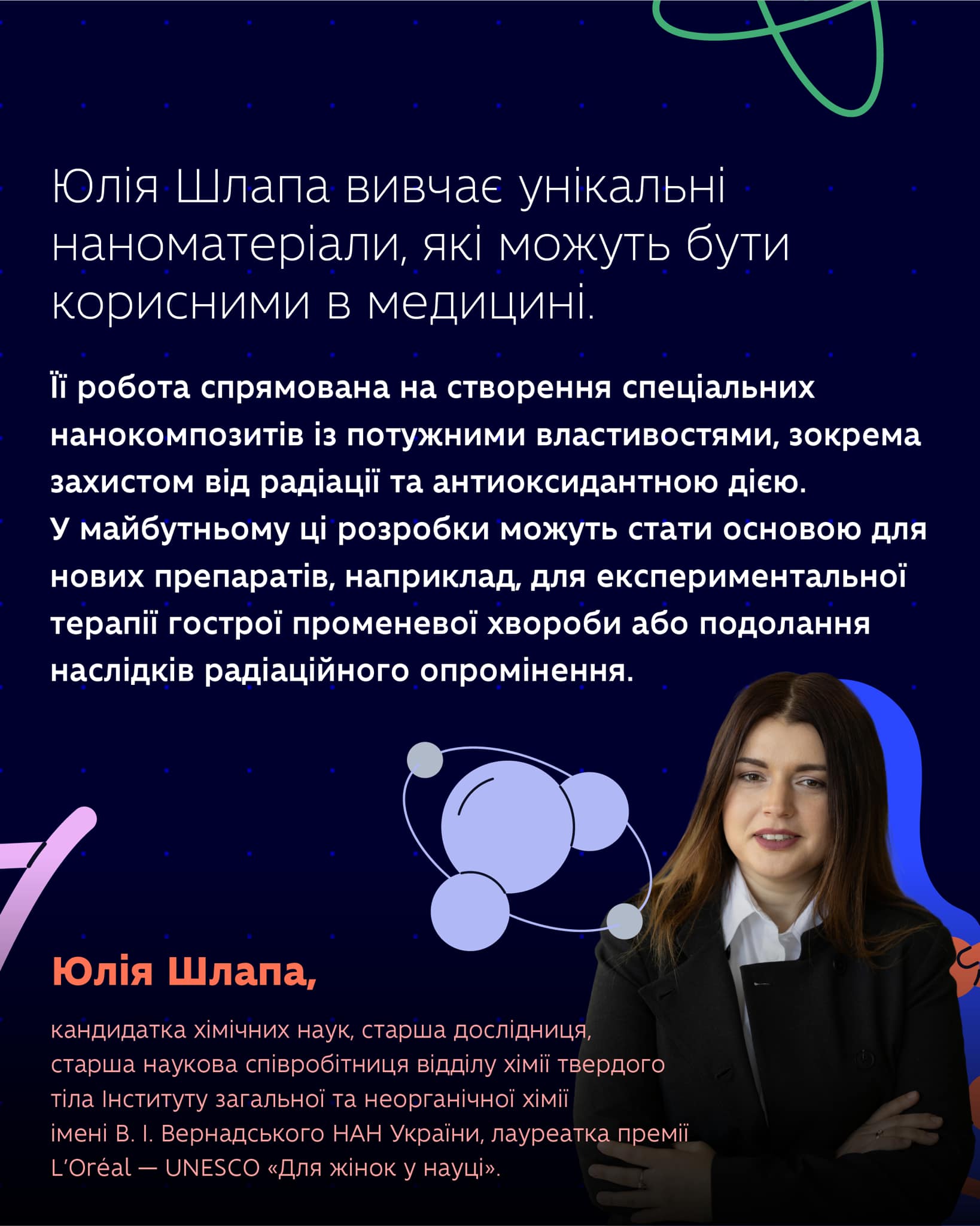 Читайте історії жінок-науковиць, усі з яких є лауреатками премії L'Oréal Groupe — UNESCO «Для жінок у науці». Їхні здобутки — від хімії до новітніх технологій — змінюють науковий ландшафт України та світу.