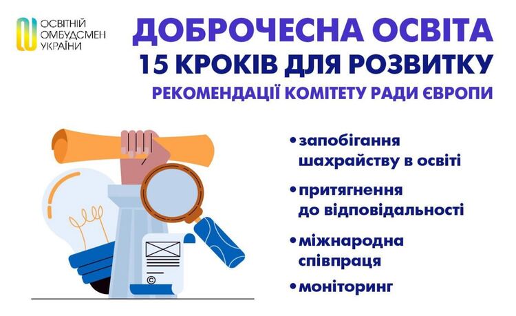Документ містить шість основних рекомендацій державам-членам Ради Європи https://bit.ly/3VzYJRc та 15 важливих кроків для розвитку та досягнення доброчесності у сфері освіти: