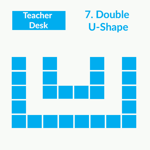 Подвійна розсадка у формі підкови дозволяє розмістити більшу кількість учнів поруч. Це дуже затишно, але має і деякі недоліки. Наприклад, учителеві важче ходити по класу. Учні позаду можуть відчути себе трохи відчуженими. Найкраще використовувати подібне розміщення під час роз'яснення нової теми, коли ви чекаєте на запрошеного гостя, чи перегляду відео.
