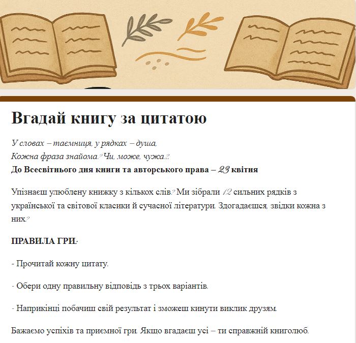 ✔ Вікторина до Всесвітнього дня книги та авторського права