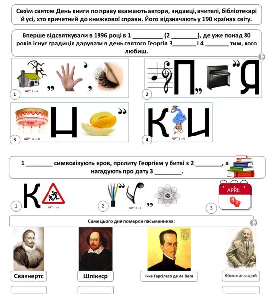 ✔ Кілька завдань для учнів до святкування Всесвітнього дня книги та авторського права (завантажити)
