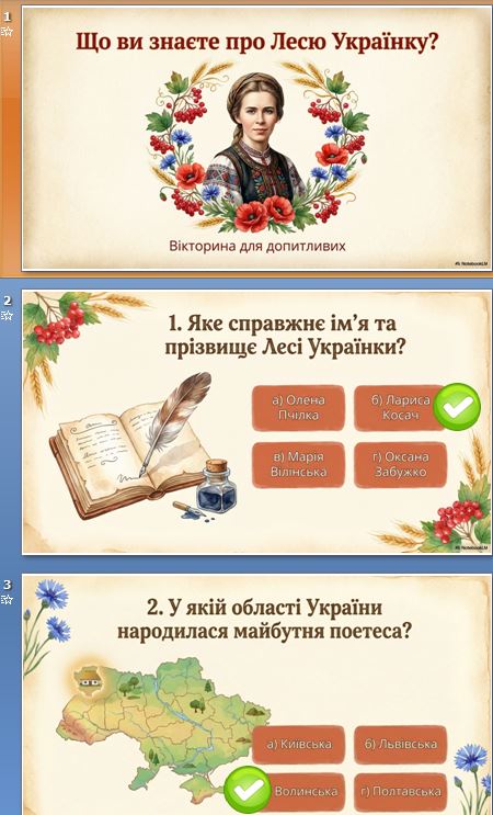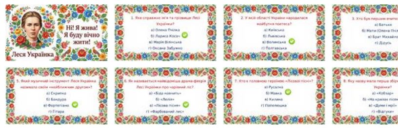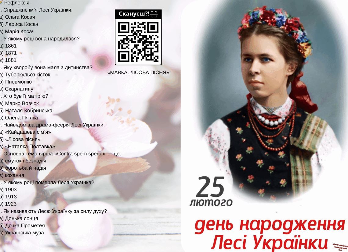 ✔ Вікторина «Що ми знаємо про Лесю Українку?»