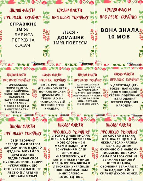 ✔ Плакат до дня народження Лесі Українки (10 частин) (завантажити)
