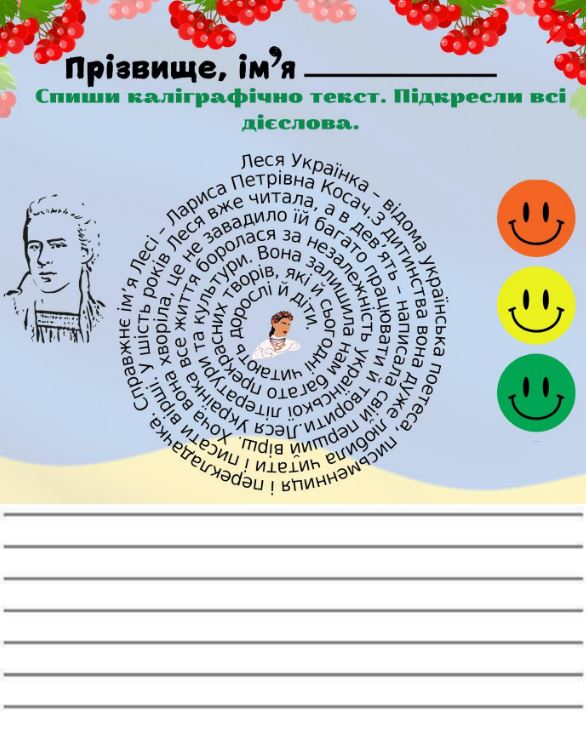 ✔ Списування "Леся Українка" 3 клас (завантажити)