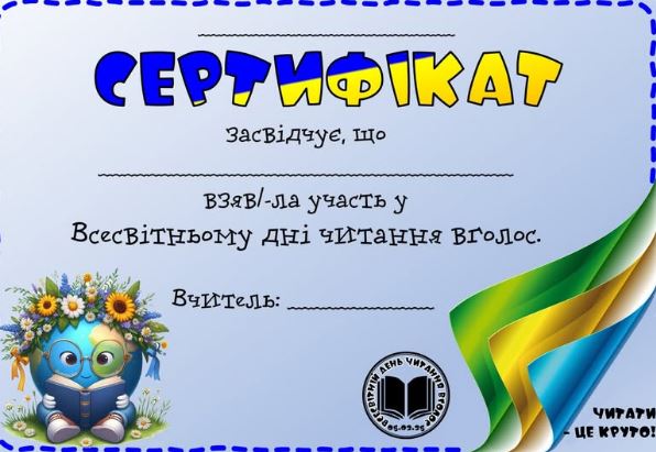 ✔ Сертифікат «Суперчитач/Суперчитачка»