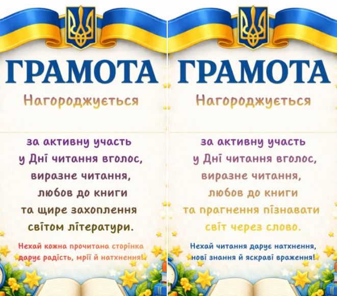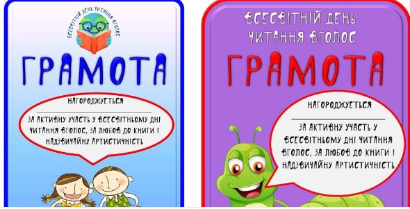 ✔ Дипломи найкращого читача і читачки вголос (завантажити)