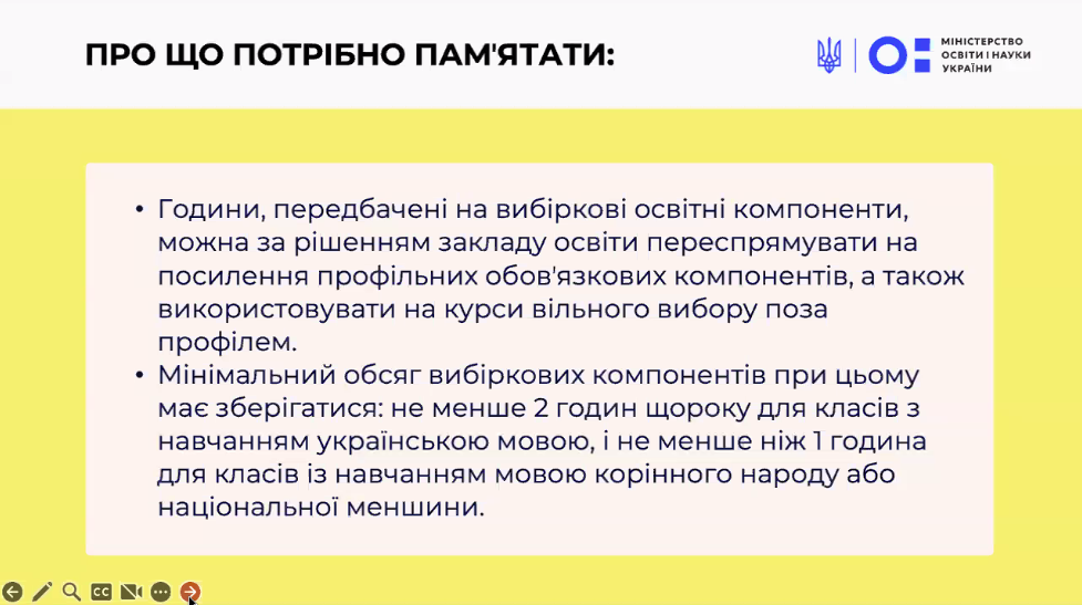 ✔ Пам’ятайте про мінімальний обсяг вибіркових компонентів: 2 години для україномовних класів і 1 година — для класів з мовами нацменшин.