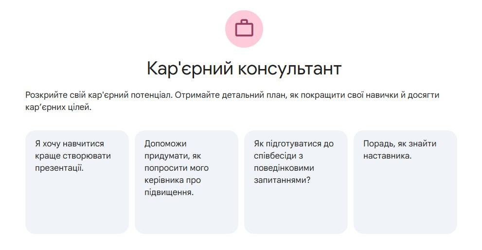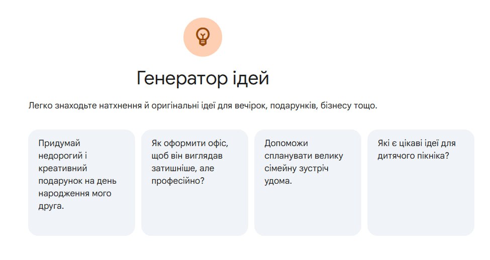 Не хвилюйтесь, навіть якщо ви вперше серед ботів — Gemini подбає про м’який старт. Обирайте одне з початкових питань, які він запропонує, і вперед до експериментів!