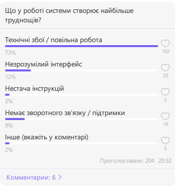 ✔ 73% користувачів назвали технічні збої/повільну роботу головним джерелом труднощів.