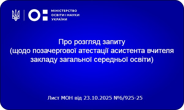 Міністерство освіти і науки України надало роз’яснення (лист МОН від 23.10.2025 №6/925-25) щодо особливостей проведення атестації педагогічних працівників, які обіймають посади асистентів вчителів у закладах загальної середньої освіти.
