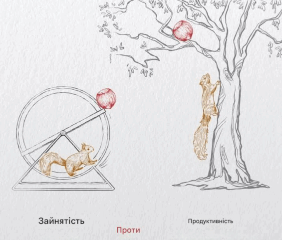 Бо це рух у нікуди на який марнується час та енергія.Бути зайнятим не означає бути продуктивним, а справжній прогрес буде лише тоді, коли ми робитимемо лише те, що справді потрібно.