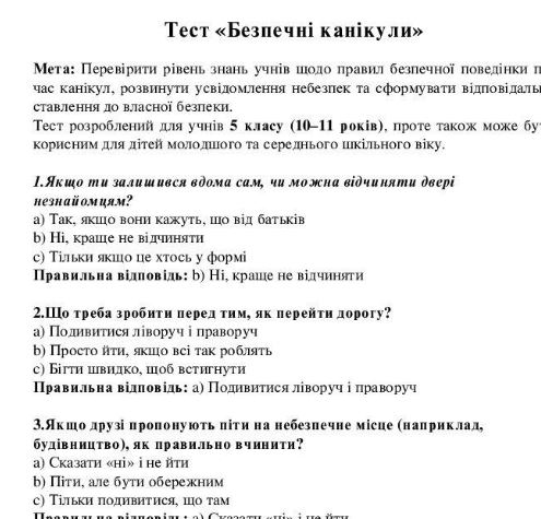 ✔ Тест «Безпечні канікули» (завантажити)