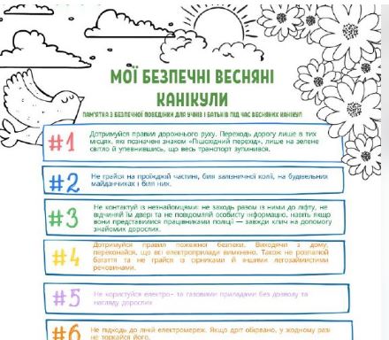 ✔ Пам’ятка для дітей та батьків на весняні канікули (завантажити)