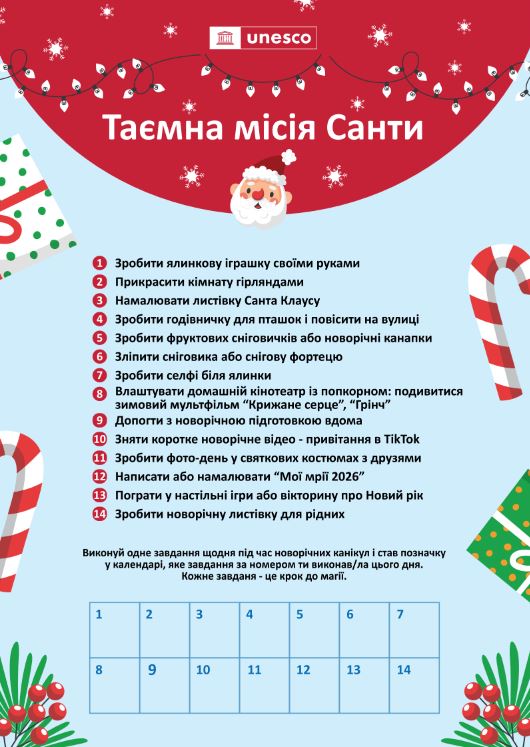 Саме тому ми підготували святковий чекліст, який перетворить зимові дні на справжню гру, де кожен учень стає помічником Санти, а кожне виконане завдання додає трішечки дива у світ ✨