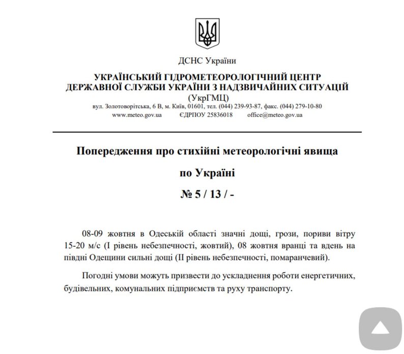 Дистанційне навчання продовжили через погіршення погодних умов. За даними За даними Гідрометцентру Чорного та Азовського морів, на півдні Одещини очікується негода помаранчевого (II) рівня небезпеки. Прогнозують значний дощ та пориви вітру 15-20 м/с.
