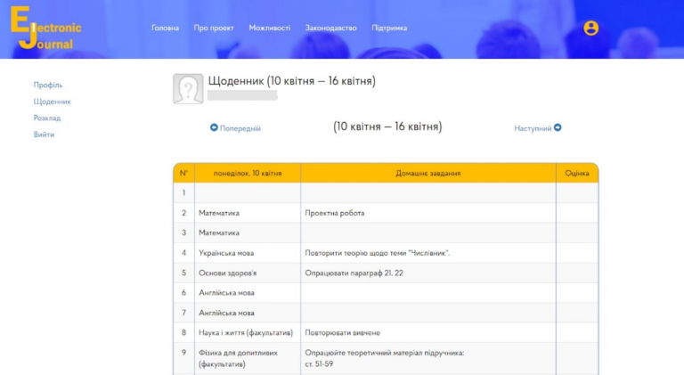 “З початком 2022–2023 навчального року в школі почали використовувати електронні щоденники на платформі МОН “Електронний журнал”. Кожен із нас отримав свій пароль та логін для входу в систему. Для учнів і батьків візуально він нагадує друкований щоденник із розкладом уроків на тиждень, оцінками й домашніми завданнями, які пишуть вчителі. У дітей є ще доступ до Classroom, де, зокрема, приходять посилання на урок (навчання в закладі змішане)”, – розповіла жінка.
