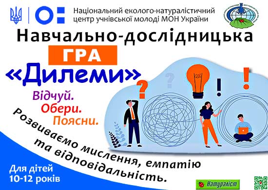 Інформаційно-дослідницька гра «Дилеми» створена для дітей віком 10–12 років з метою допомогти їм навчитися робити вибір у складних, але життєвих ситуаціях.