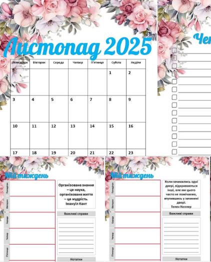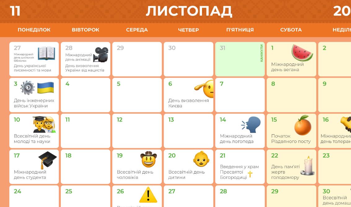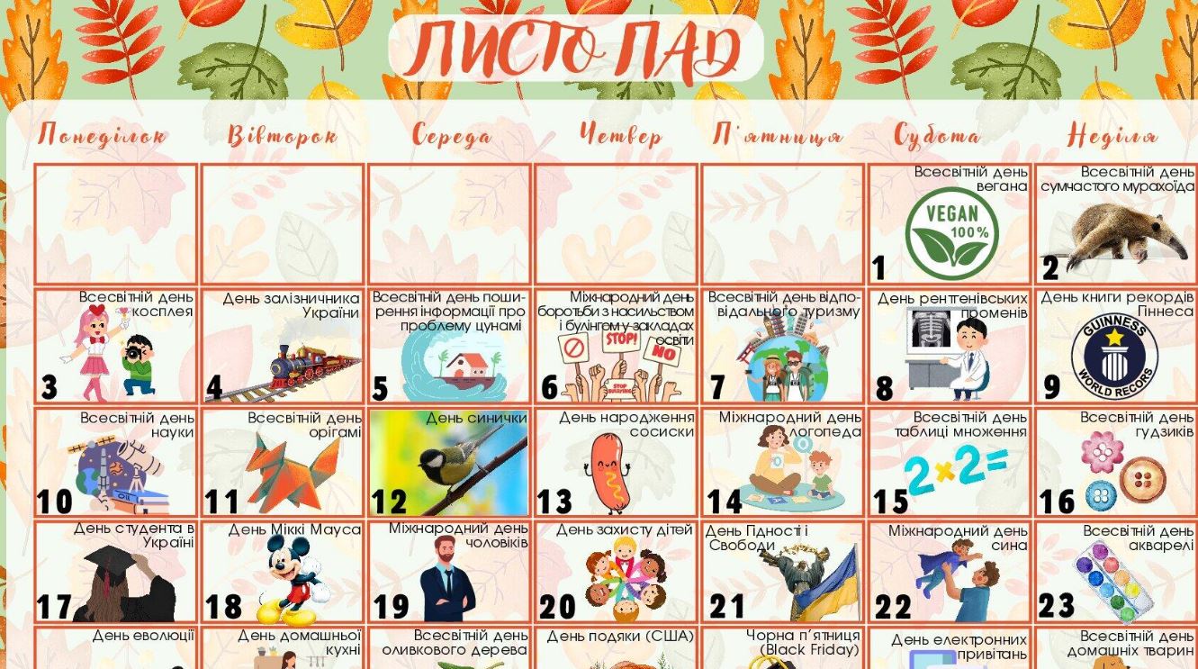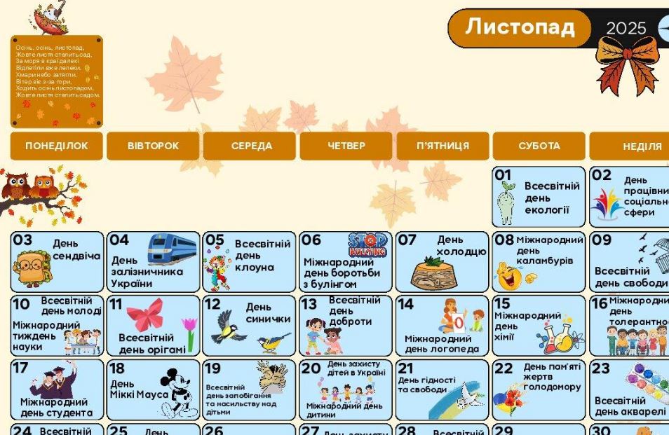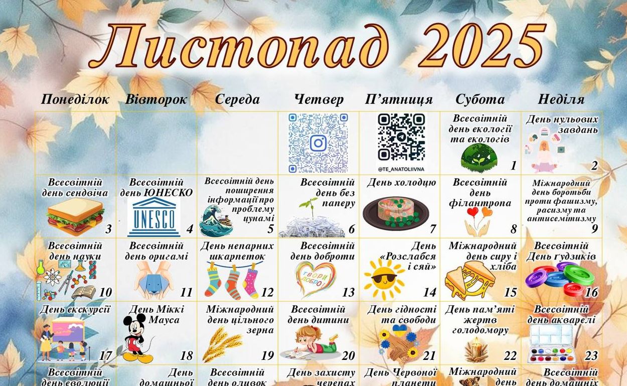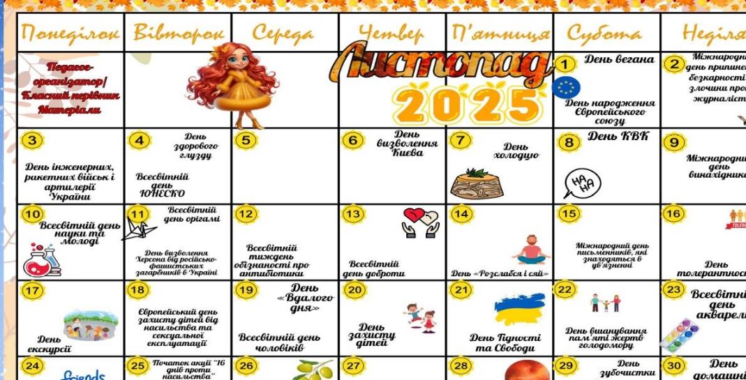 ✔ Календар листопад 2025 р. (завантажити)