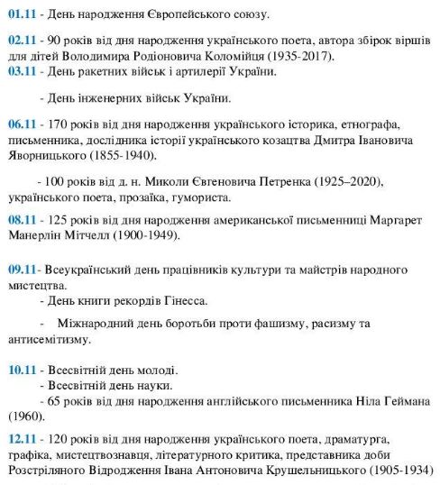 Календарі знаменних, пам’ятних, літературних та релігійних дат на 2025 - 2026 рік (+ листопад 2025 року)