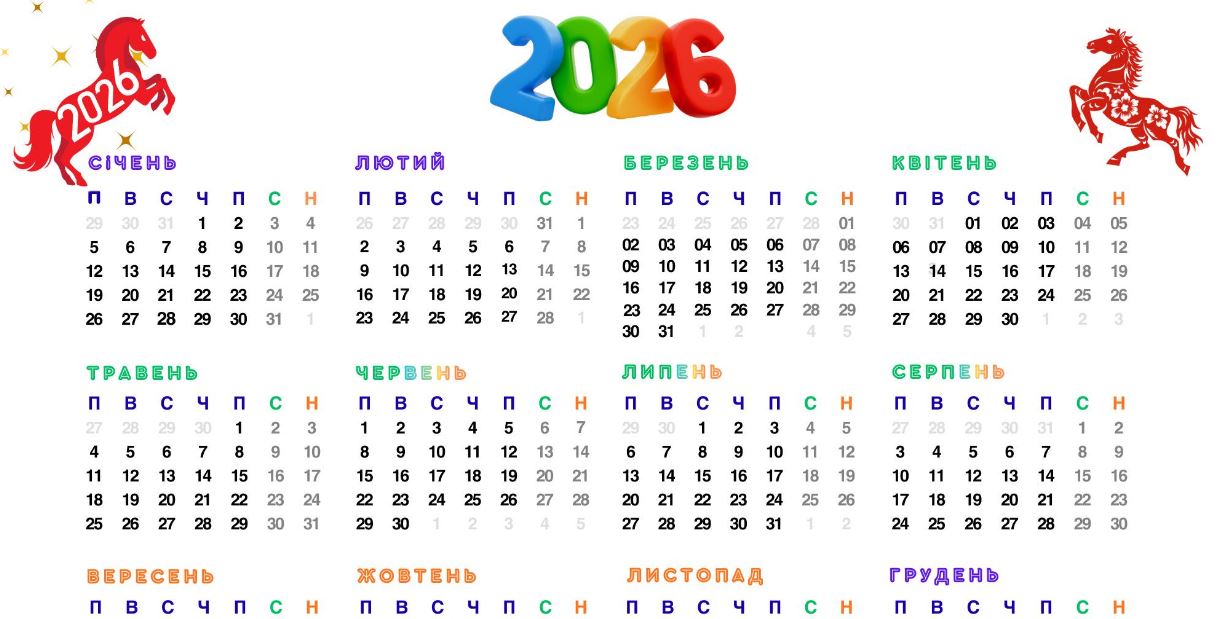 ✔ Календар святкових, знаменних і пам'ятних дат на 2025-2026 н. р. (завантажити)