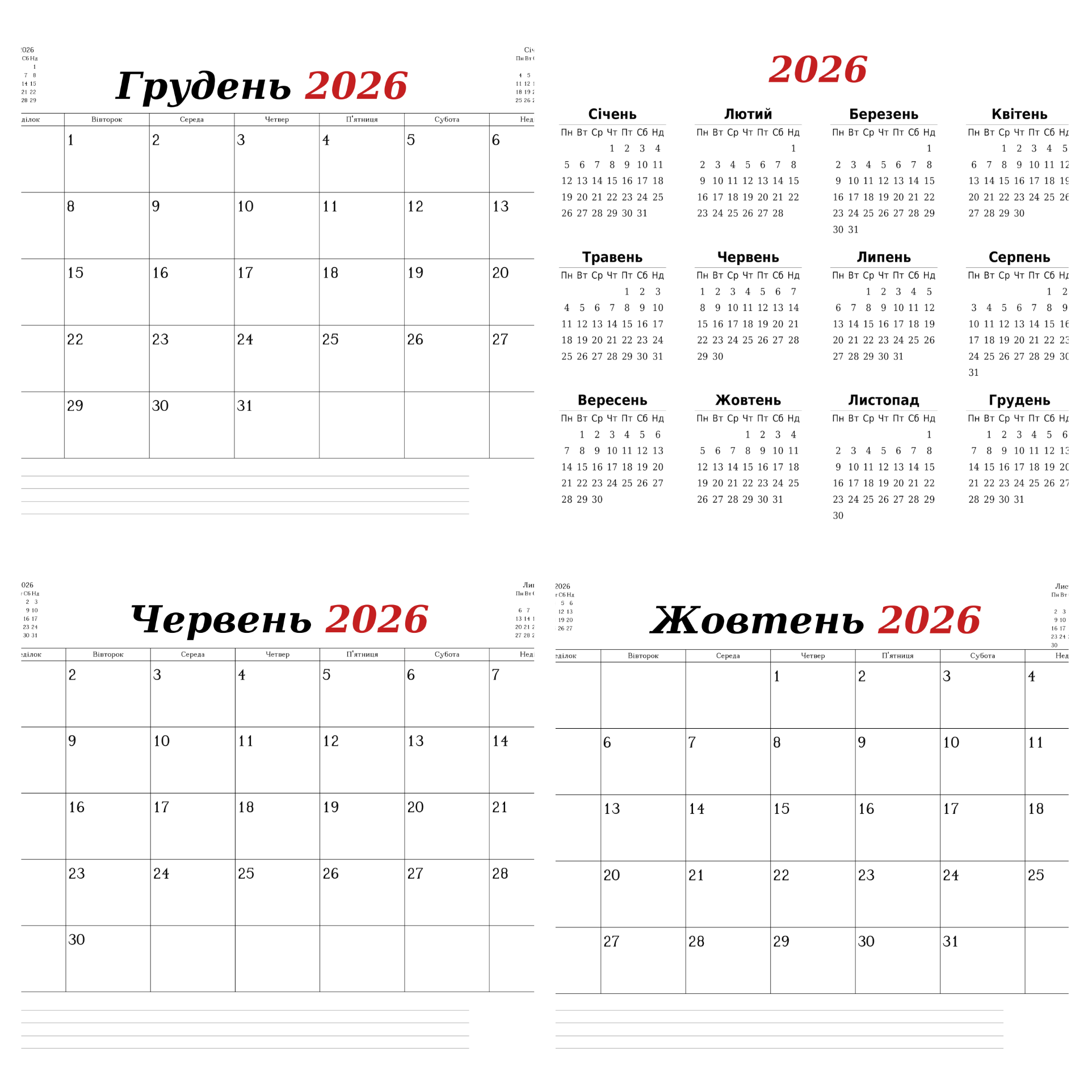 - календар знаменних і пам'ятних дат на 2026 рік (завантажити)