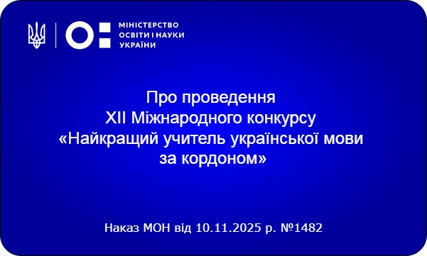 Детальна інформація про організацію та проведення ХІІ Міжнародного конкурсу «Найкращий учитель української мови за кордоном» у 2025/2026 навчальному році визначена і затверджена наказом Міністерства освіти і науки України від 10.11.2025 № 1482.