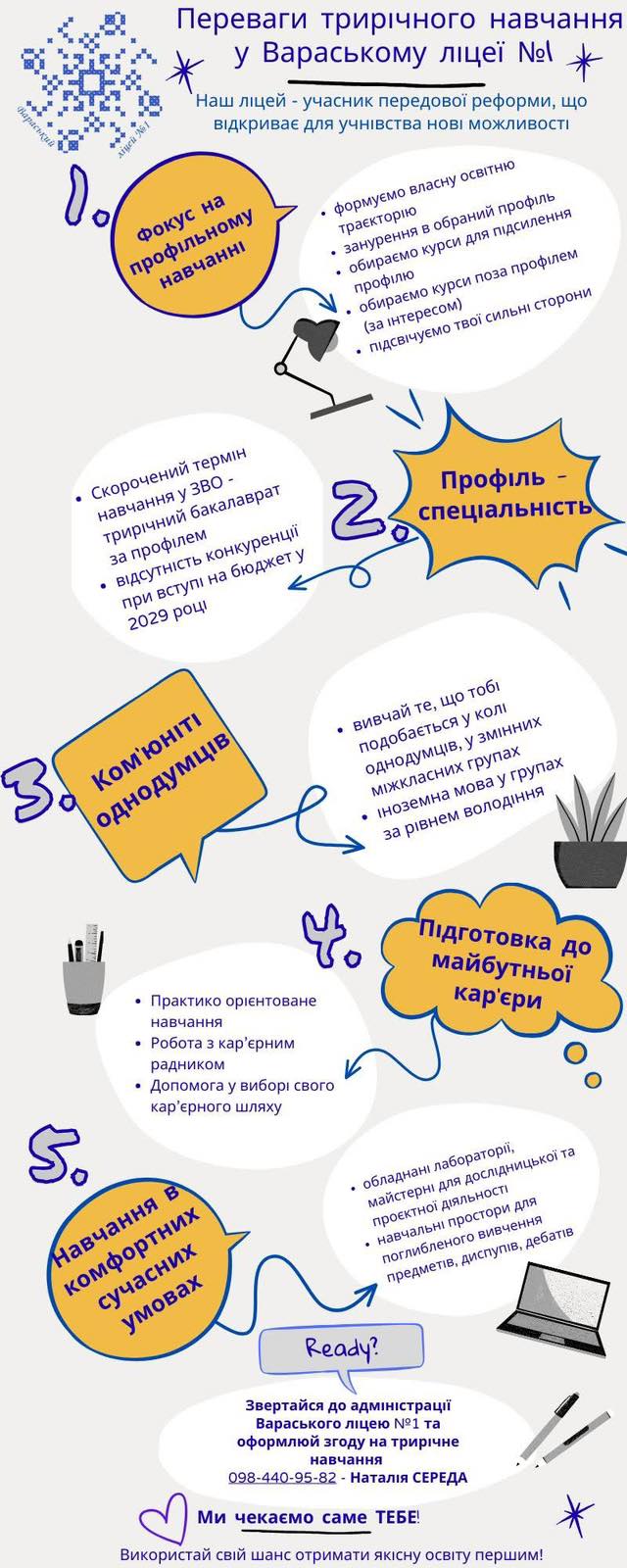 1. Профільна школа → скорочений термін навчання у ЗВО → трирічний бакалаврат
