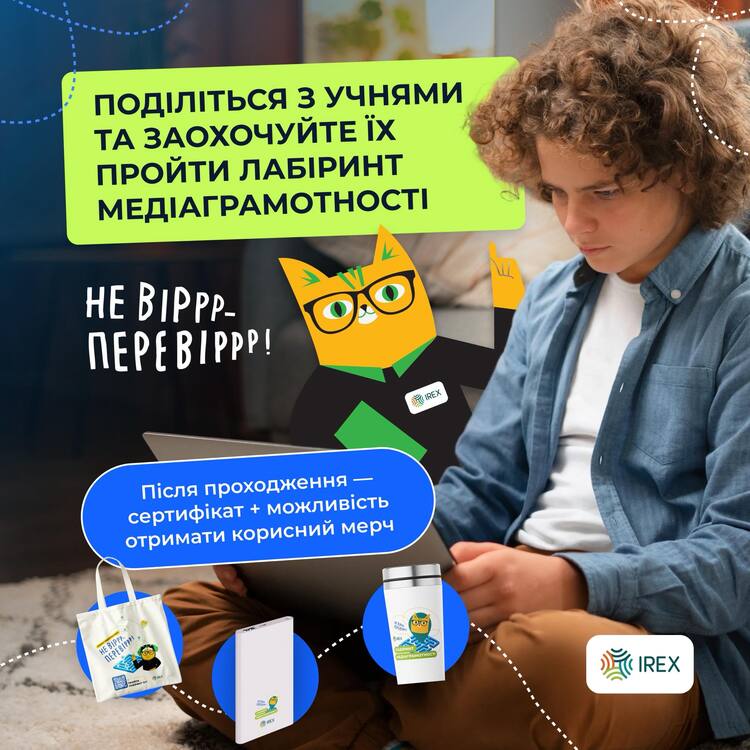 Додаткова мотивація для учнів — можливість отримати корисний брендований мерч від IREX, що робить участь ще цікавішою.