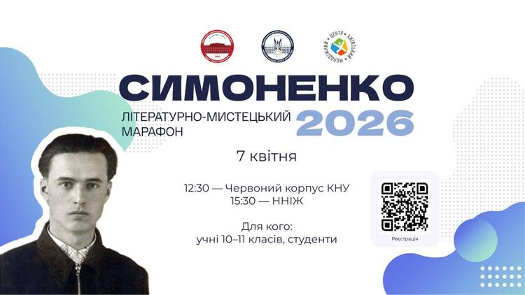 ✍️ 7 квітня у Київський національний університет імені Тараса Шевченка відбудеться літературно-мистецький марафон «Симоненко 2026» – подія, що поєднає пам’ять про поета і живу розмову з його словом у сьогоденні.