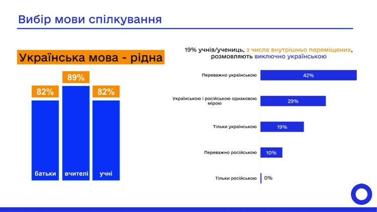 📍94% вчителів зазначили, що проводять уроки виключно українською мовою, 82% з них використовують навчальні матеріали виключно українською мовою, що демонструє позитивну динаміку щодо дотримання мовного законодавства у освітньому процесі;