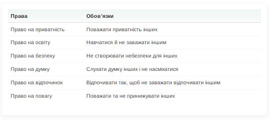 «Я маю право на освіту. Це означає, що я можу вчитися, розвиватися, ставити запитання. Але це також означає, що я повинен поважати працю вчителів і не заважати іншим у навчанні» .
