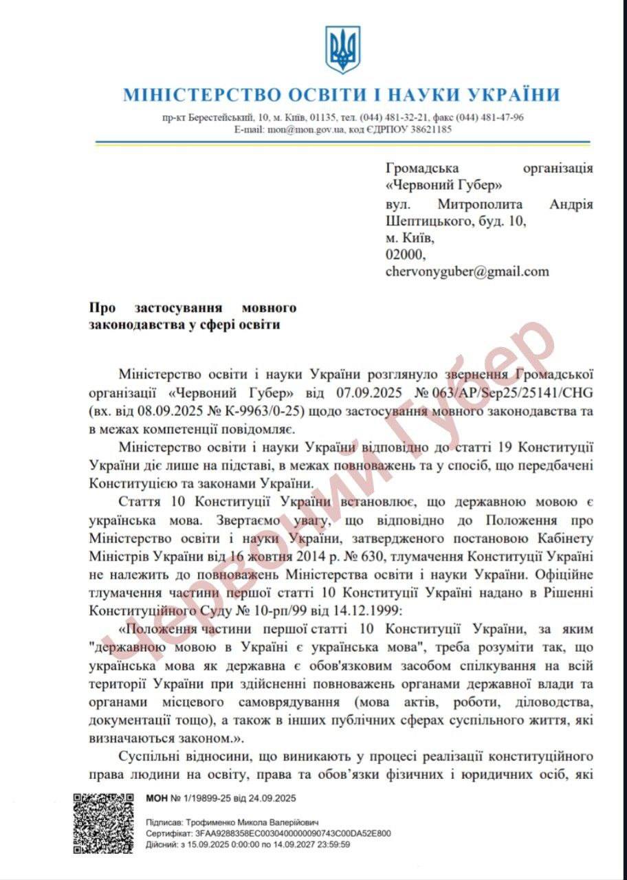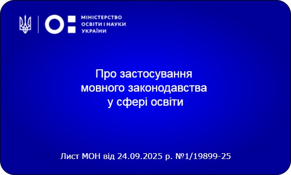 Лист МОН від 24.09.2025 р. №1/19899-25 "Про застосування мовного законодавства у сфері освіти"