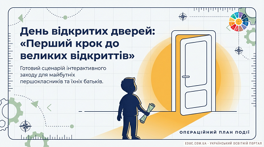 ✔ День відкритих дверей у 1-му класі: «Перший крок до великих відкриттів» – сценарій (завантажити)
