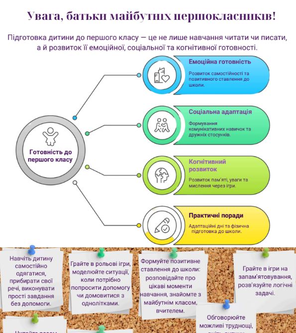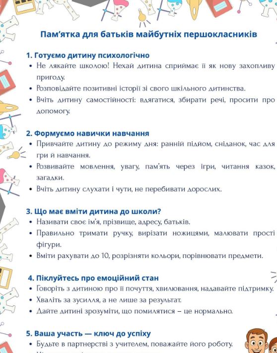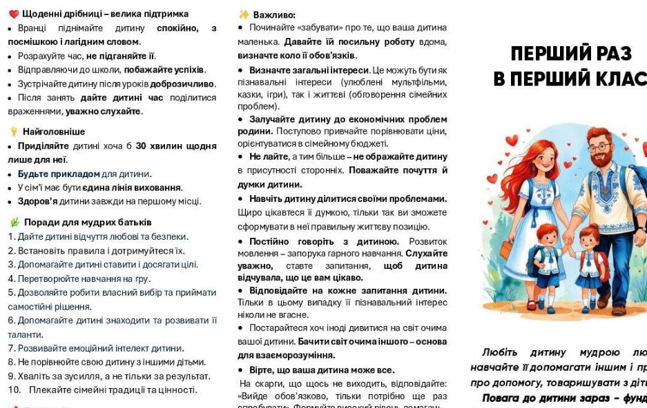 ✔ Брошура-пам’ятка для батьків: 10 кроків до успішної адаптації першокласника (завантажити)