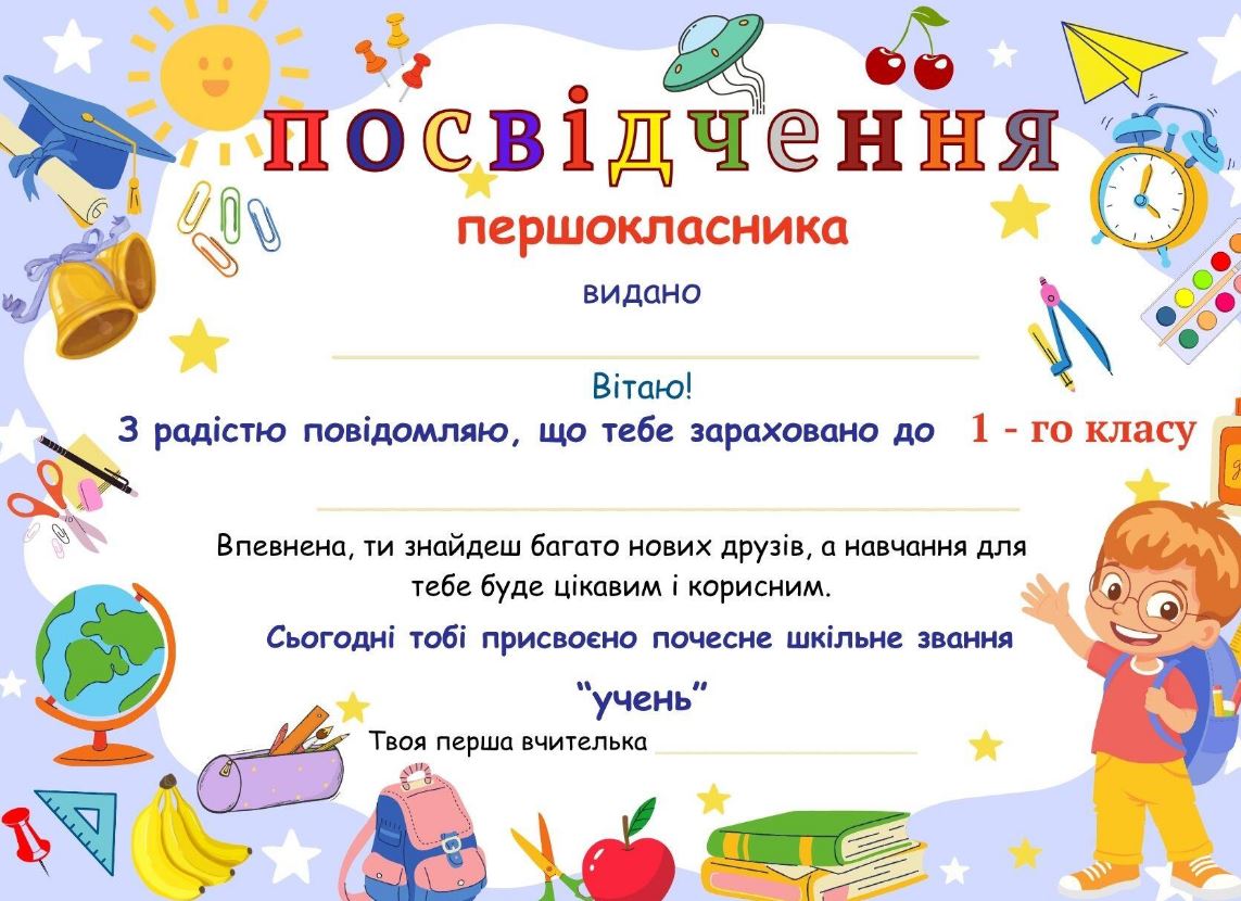 ✔ Посвідчення першокласника/першокласниці (двосторонні) (завантажити)