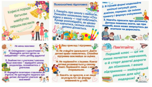 ✔ 15 корисних порад батькам майбутніх першокласників (завантажити)