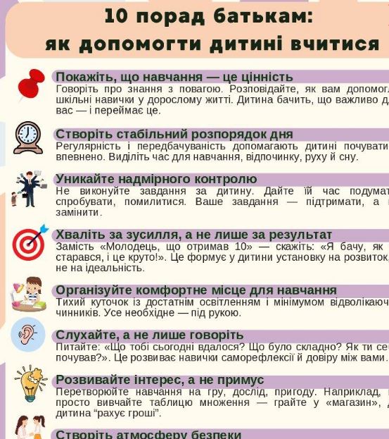 ✔ 10 порад батькам, як допомогти дитині вчитися (завантажити)