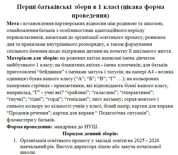 ✔ Перші батьківські збори для батьків майбутніх першокласників (завантажити)