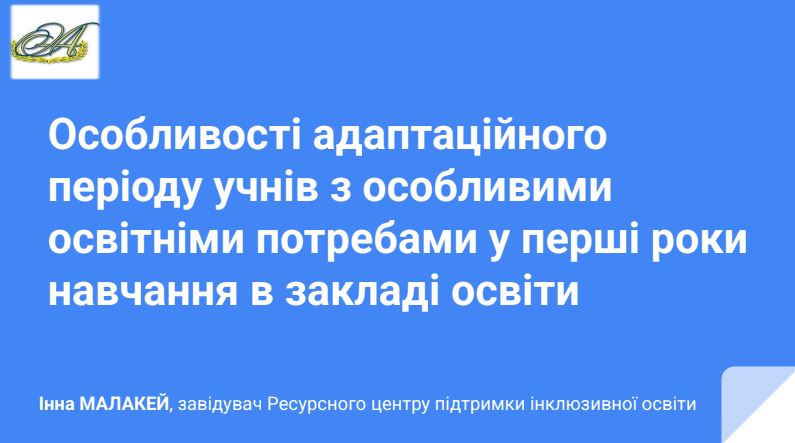 ✔ Презентація "Особливості адаптаційного періоду учнів з особливими освітніми потребами у перші роки навчання в закладі освіти" (завантажити)