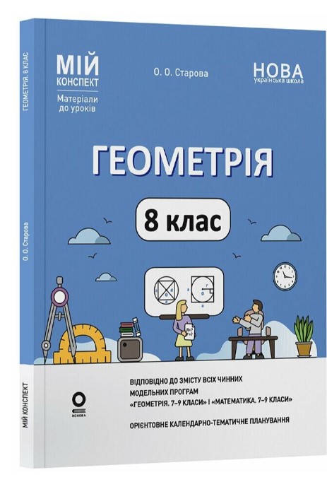 Геометрія. 8 клас / О. О. Старова. — Харків : Вид. група «Основа», 2025. — 206, [2] с. : табл., іл., схеми. — (Серія «Мій конспект. Матеріали до уроків») |