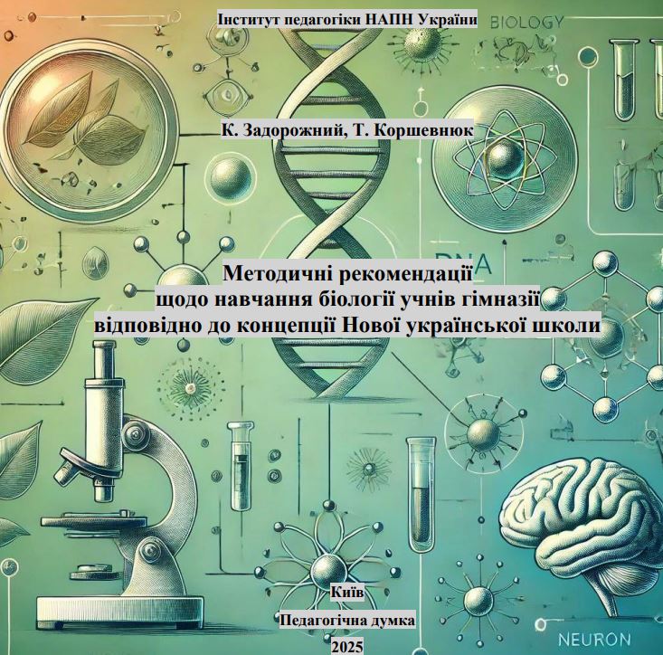 Методичні рекомендації щодо навчання біології учнів гімназії відповідно до концепції Нової української школи : методичні рекомендації. / Задорожний К., Коршевнюк Т. – Київ : Педагогічна думка, 2025. – 15 с. | Завантажити | ||