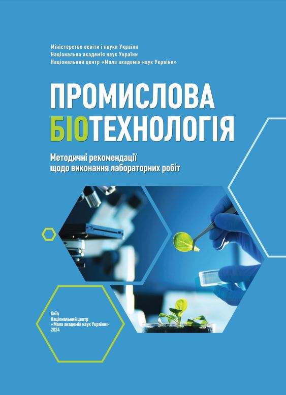 Промислова біотехнологія: методичні рекомендації щодо виконання лабораторних робіт / уклад.: О. Л. Толстов, І. М Бей; відп. за вип.: Т. В. Пещеріна, А. М. Буткевич. — Київ : Національний центр «Мала академія наук України», 2024. — 148 с |