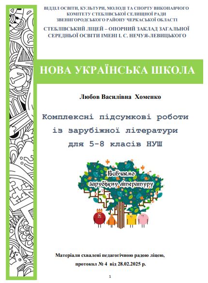 Комплексні підсумкові роботи із зарубіжної літератури для 5-8 класів НУШ / Хоменко Л.В. - Стеблів, 2025. - 125 с. | Завантажити | |