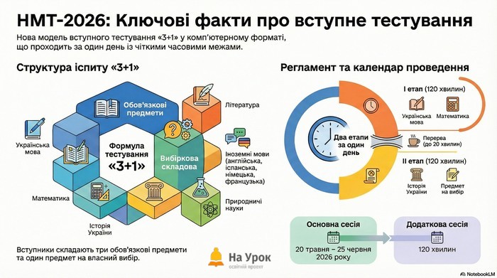 НМТ у 2026 році проходитиме у форматі одноденного комп'ютерного тестування, яке розділене на два етапи з короткою перервою між ними: