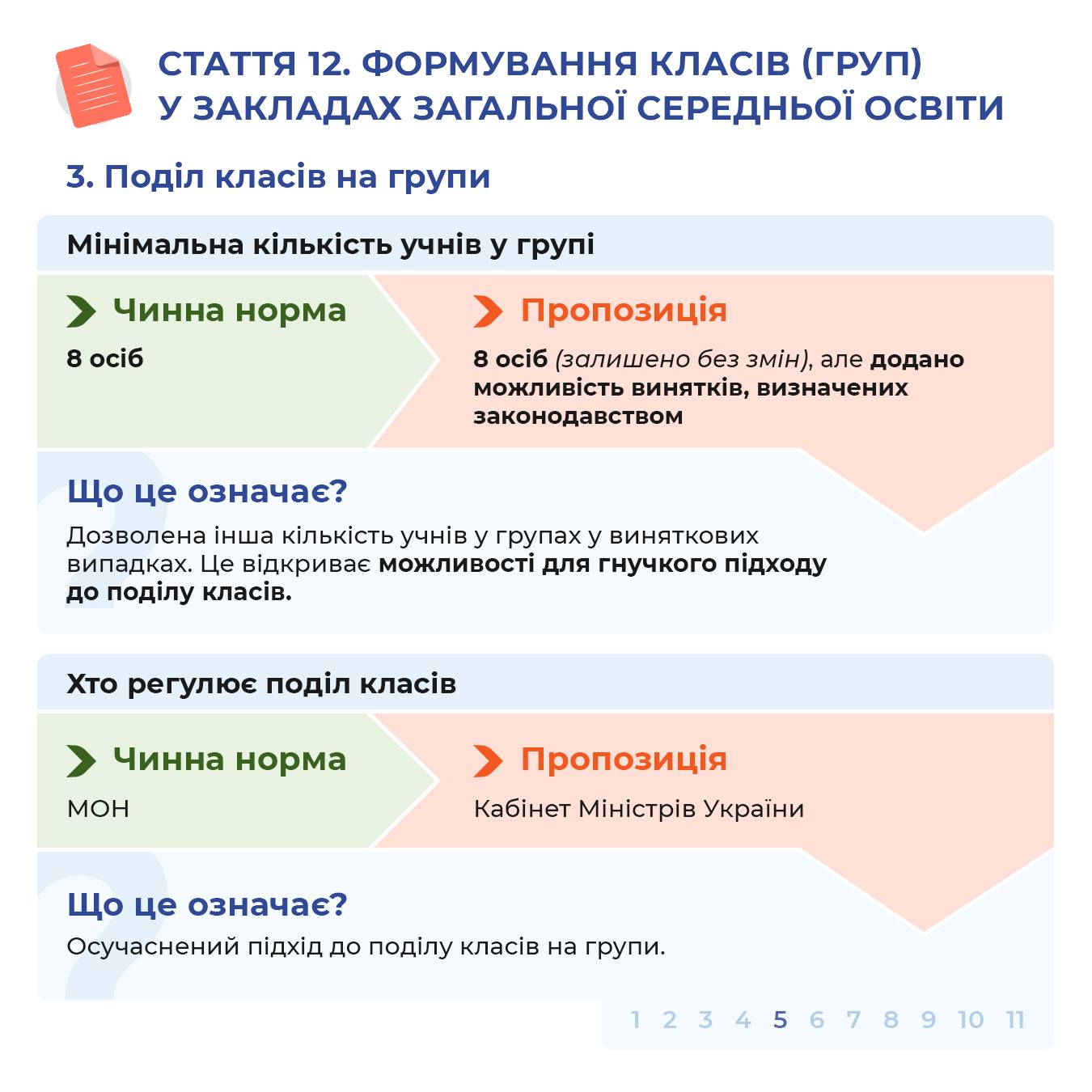 ➡️ Уточнений механізм поділу класів на групи і передача регулювання від МОН до Кабінету Міністрів України;
