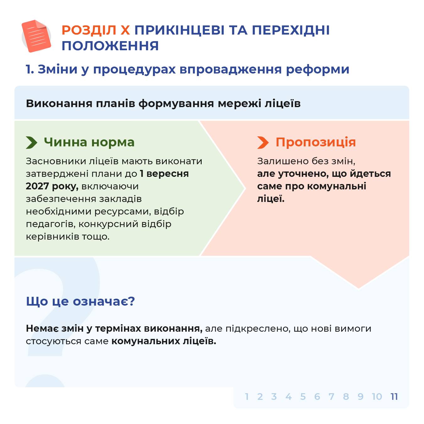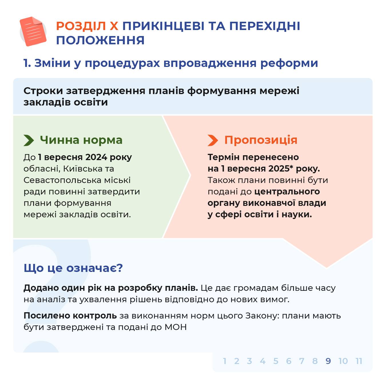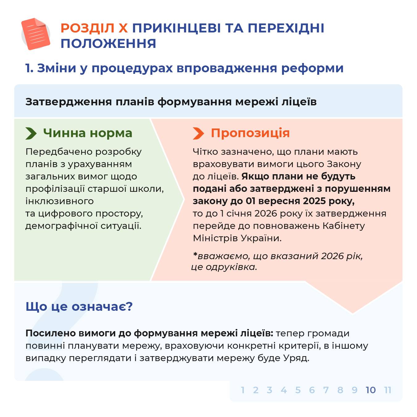➡️ Оновлені терміни затвердження планів формування мережі ліцеїв — до 1 вересня 2026 року, із можливим переходом повноважень до Кабміну у випадку невиконання.