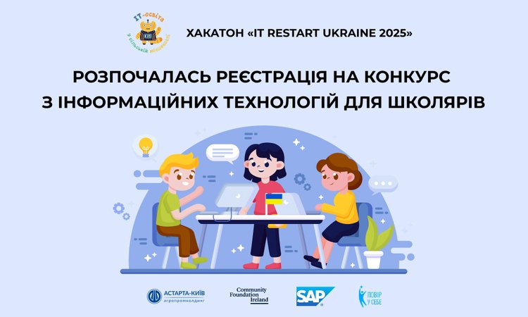 Стартувала реєстрація на Всеукраїнський хакатон “IT Restart Ukraine 2025” — конкурс з інформаційних технологій для дітей віком від 8 до 16 років. Захід покликаний підтримати розвиток ІТ-компетенцій серед молоді, особливо у сільських громадах, та надати учасникам можливість реалізувати власні креативні ідеї.