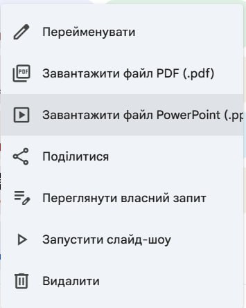 PS: Ця функція тільки для нових генерувань, згенеровані раніше презентації не мають цієї функції